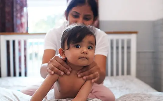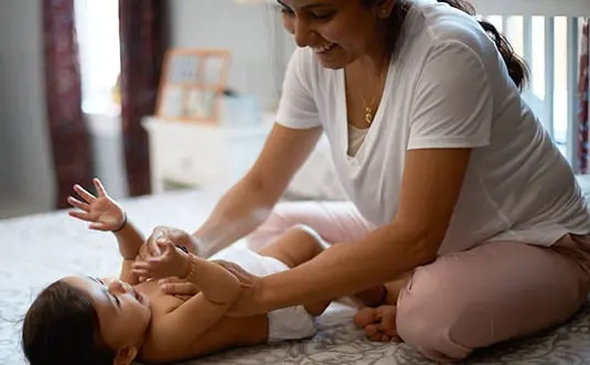 भले ही आपका न्यू बॉर्न बेबी बहुत ही नाज़ुक लगता हो, जन्म के बाद जल्दी ही उसकी मसाज का रूटीन बनाने से घबराएँ नहीं। हर दिन की मसाज से, आप दोनों के बीच का बॉन्ड मज़बूत होता है और उसका खुशहाल, हेल्दी विकास होता है।