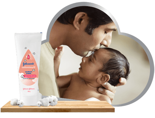आपके न्यू बॉर्न की कोमल, नाज़ुक स्किन का ध्यान रखने के लिए जॉनसन्स ® कॉटनटच® एक सही तरीका है।